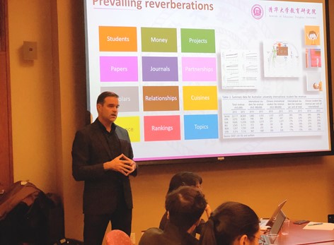 The seminar started with a conversation in the development of Chinese higher education and its influence worldwide. Professor Coates from Institute of Education, Tsinghua University, emphasized that studying China is essential to understanding higher education fundamentally over the next 20-40 years. Professor Coates shared information and research on prevailing reverberations, including but not limited to Students, Money, Projects, Papers, Journals, Partnerships, Scholars, Relationships, Relevance, Rankings, and Topics.
