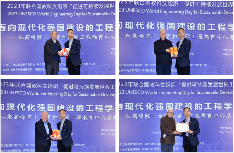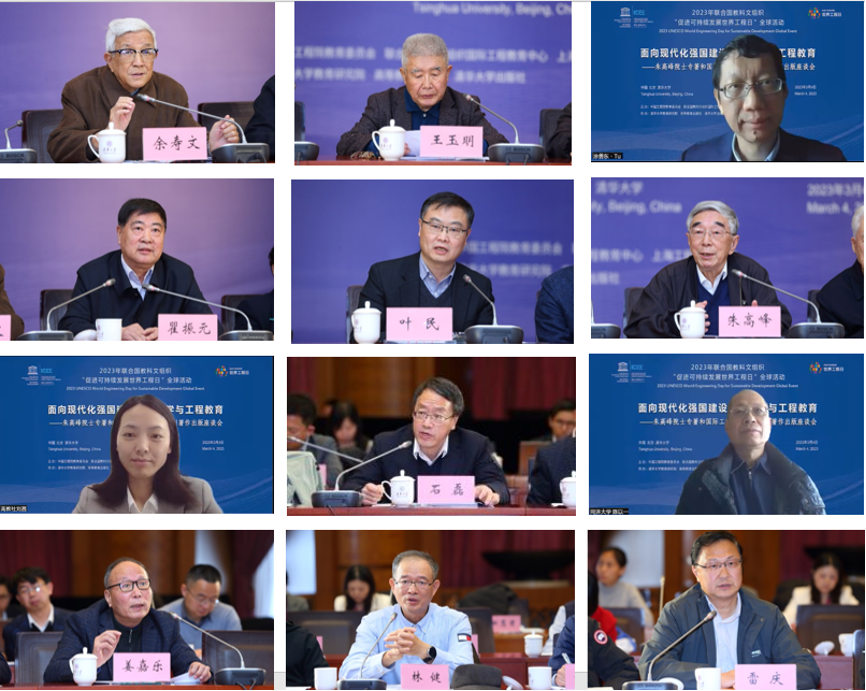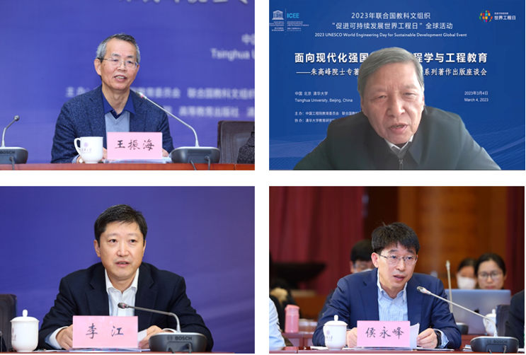 On March 4, 2023, as one of the global events of UNESCO World Engineering Day for Sustainable Development, Engineering and Engineering Education-Monograph of Chinese Academy of Engineering (CAE) Member ZHU Gaofeng and ICEE Book Series Publication Symposium took place at Tsinghua University. The symposium focused on the theme of the new book series of Engineering and Engineering Education by CAE member ZHU Gaofeng, SUN Yongfu, Chinese Academy of Sciences (CAS) member GU Binglin, Prof. YU Shouwen, and ICEE. The symposium was organized by the Education Committee of the CAE, the International Centre for Engineering Education under the auspices of UNESCO (ICEE), and Shanghai University of Engineering Science, and co-organized by the Institute of Education (IOE), Tsinghua University, Higher Education Press, and Tsinghua University Press.
