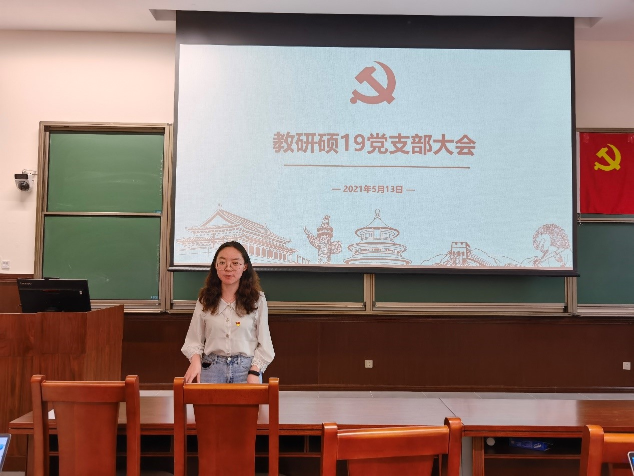 2021年5月13日下午3点,教研硕19党支部在第二教学楼403教室举办了预备党员发展大会,讨论表决杨绒、董梦琪及张立鹤三位同志发展问题。会议由党支部书记黄钰婷主持,支部全体正式党员及预备党员参加了会议。