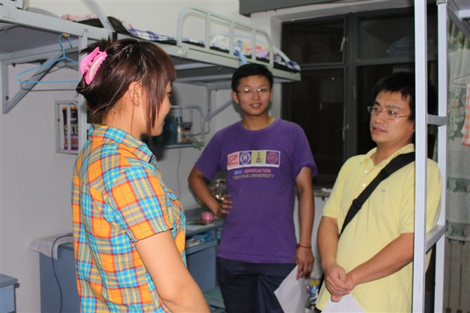 李锋亮老师深入到每一间宿舍,详细查看宿舍的各种设施,亲切询问同学们在住宿过程中是否存在困难。当李锋亮老师看到研究生宿舍设施齐备,同学们将宿舍布置得整洁温馨后十分高兴,他要求新生们一定要倍加珍惜当前良好的学习、生活环境,抓紧时间做好学习和科研工作。走访过程中锋亮老师与同学们进行了深入交谈,全面了解了新生们的思想状态、研究计划等。李锋亮老师指出新生们在研究生学习期间既要努力学习,又要积极的锻炼身体,尤其要积极踊跃参加集体活动,加速融入到教育研究院这个大家庭中,增强集体凝聚力。