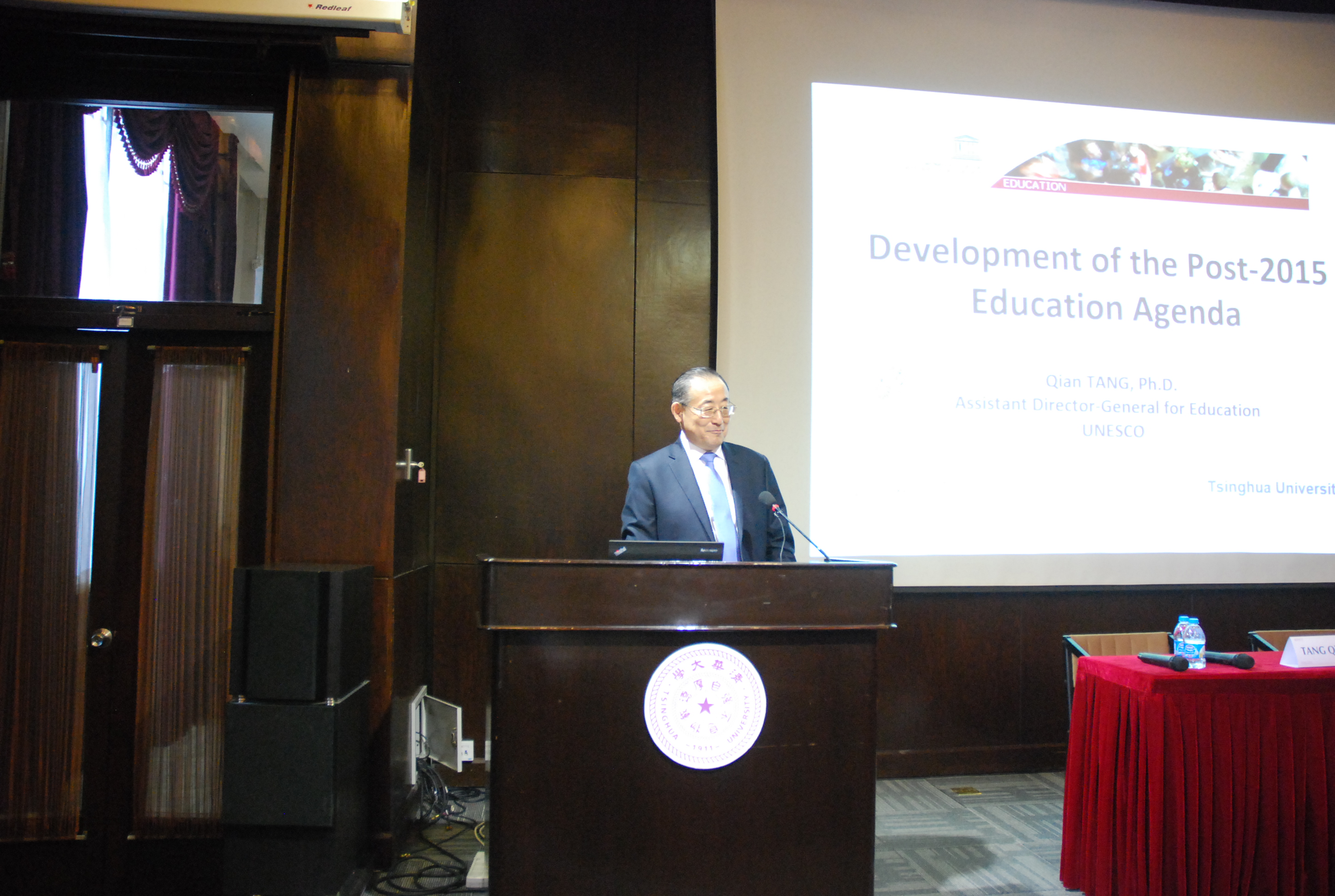 当天的清华图书馆报告厅座无虚席,报告会由教育研究院常务副经理史静寰教授主持。唐虔博士在演讲中强调了国际社会、尤其是联合国教科文组织关于2015年之后的全球教育议程与目标所开展的重要磋商和所达成的共识,介绍了即将由联合国秘书长主持的世界教育大会,并与清华师生分享了他在国际组织中20多年的工作经验和心得体会。演讲结束后,唐虔博士与清华师生进行了热情真诚的问答,结合自己的教育经历和工作经历,为清华学子提出了期望与鼓励。