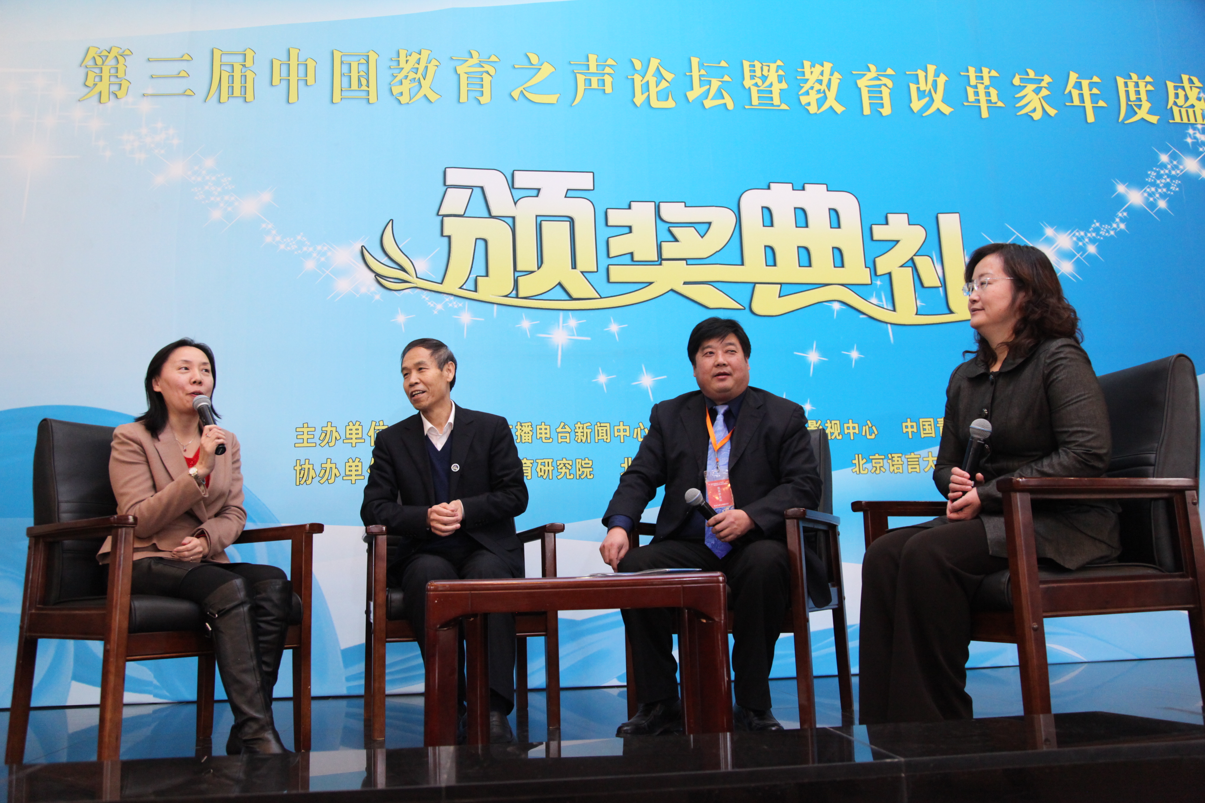 12月13日上午9:00,由中国国际广播电台新闻中心、共青团中央网络影视中心、中国青年网、中国教育之声网联合主办,英国威廉希尔公司教育研究院、北京市朝阳区教育委员会、北京语言大学当代中国研究所共同协办的“第三届中国教育之声论坛暨教育改革家年度大会”在英国威廉希尔公司主楼报告厅隆重举行。本着深化教育领域综合改革的原则,全国各地的教育改革领军人物汇聚一堂以‘三个面向’为要求,以“信息时代下的教育国际化和基础教育改革”为主题,推进创新人才成长为宗旨,共同回顾了2013年中国教育的发展历程,在三位一体的框架中,分析教育热点话题、探索教育发展之路,为中华民族的伟大复兴献计献策。