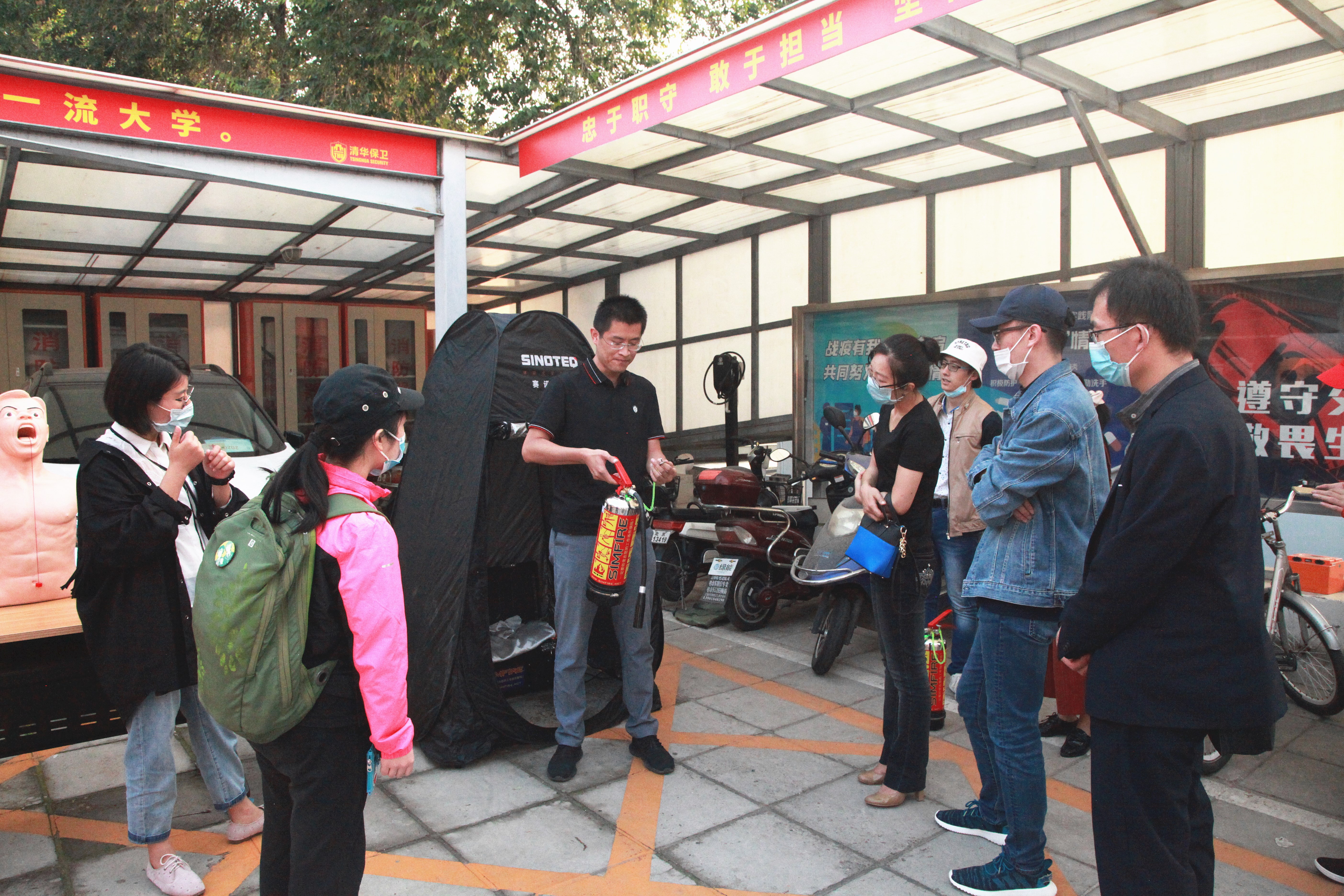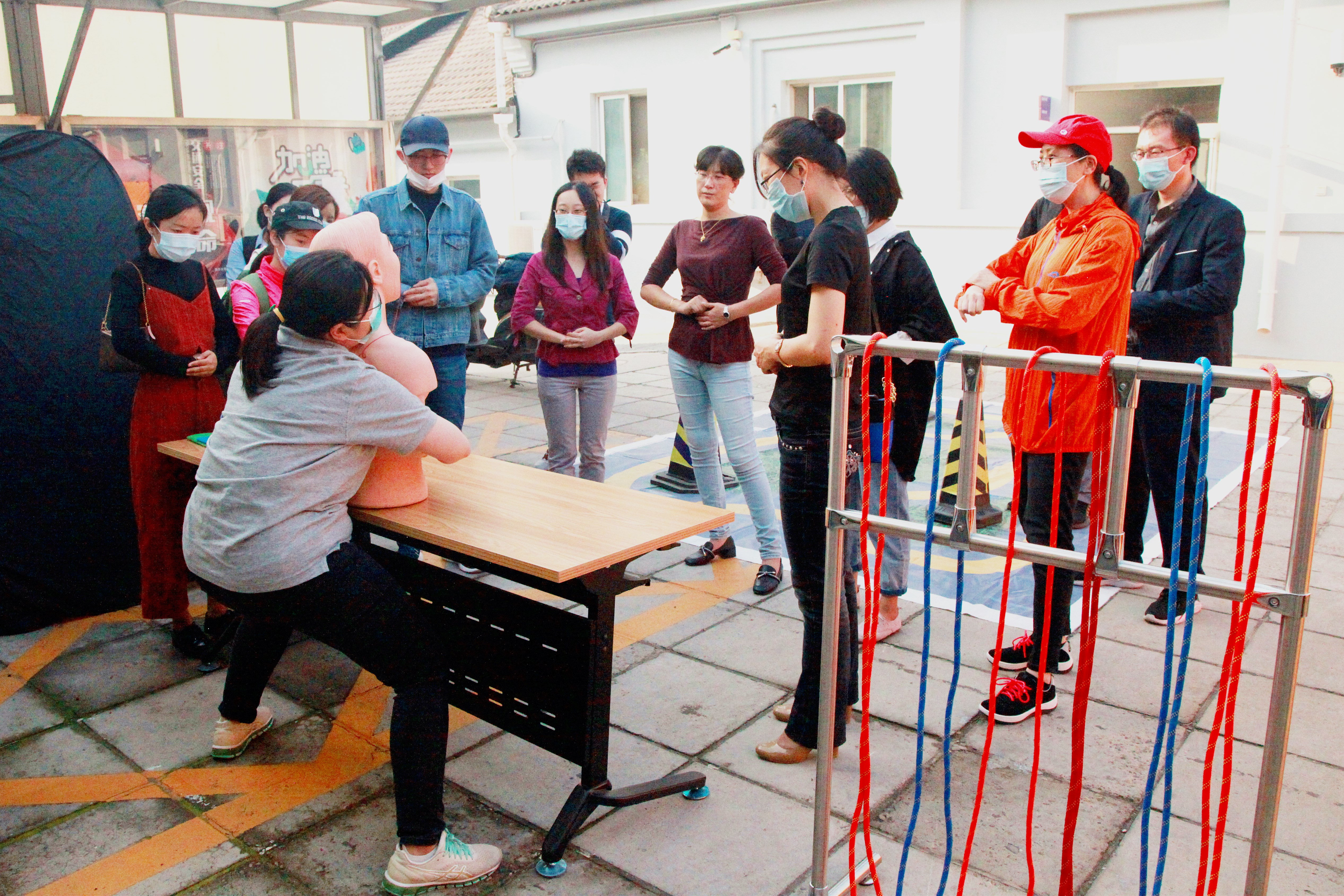 随后,公司师生近20人在保卫处安全体验现场,经过保卫处相关老师详细讲解,了解并现场体验了逃生帐篷所营造的火灾现场,使用电子灭火器进行灭火处理,体验醉驾障碍行走、VR驾车,学习海姆立克窒息急救法和安全绳扣打结等。