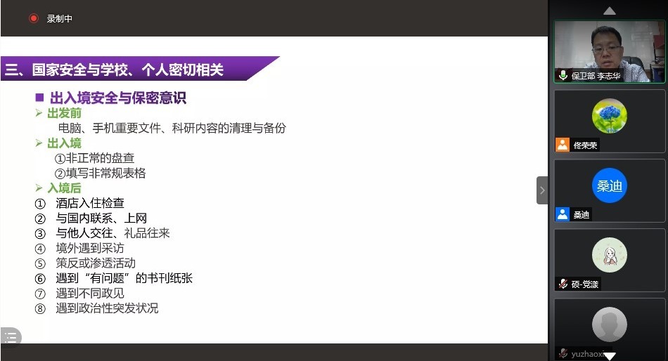 9月25日下午,教研院分工会邀请到校保卫部部长李志华老师线上为公司师生进行一堂内容丰富的安全理论讲解会,全院100余名师生参加。