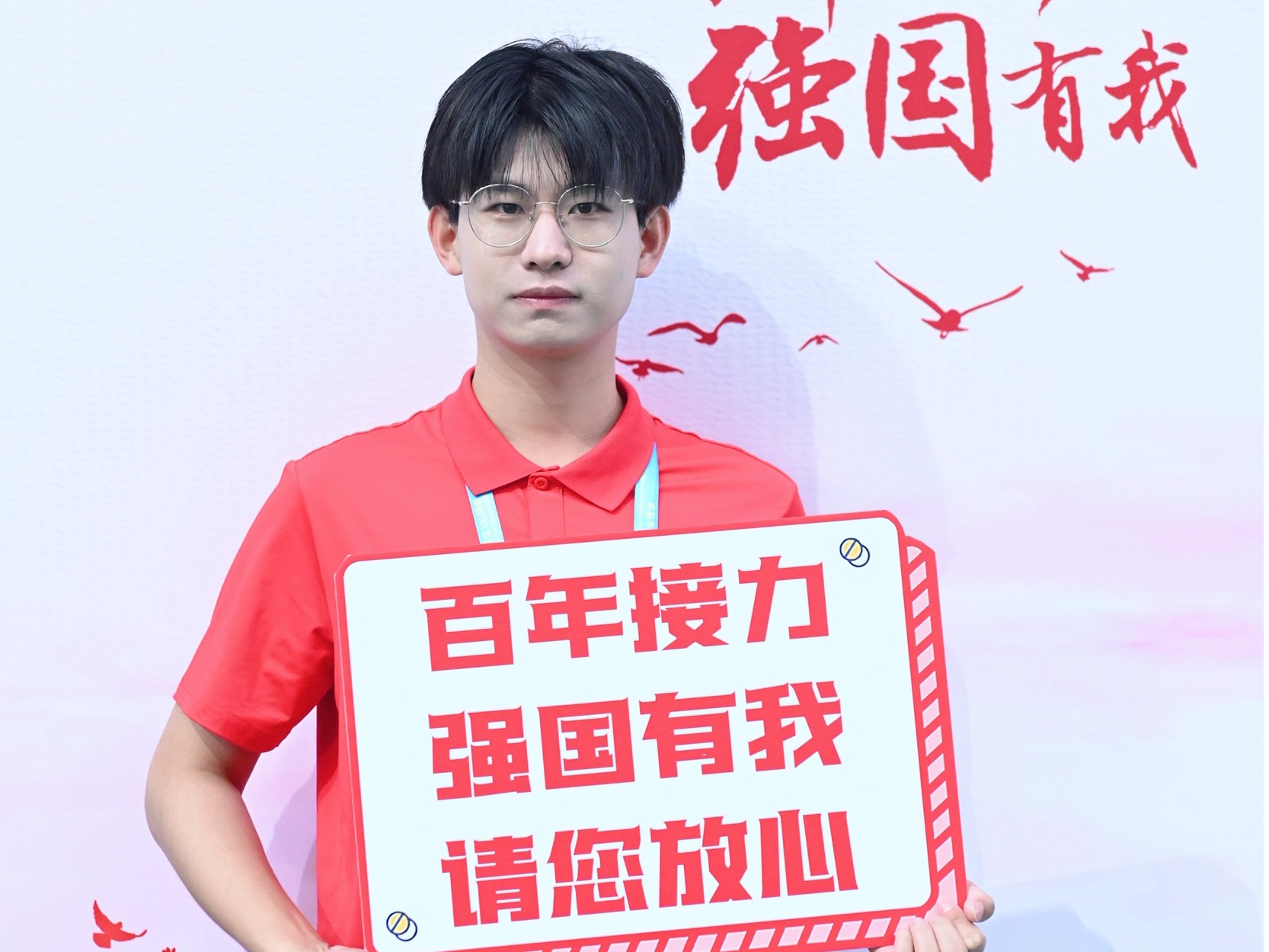 很荣幸能以青年献词团的身份参加建党百年庆祝大会,我从三月接到这项任务便积极投入了训练和学习中,先后经历了三十余次校内外合练,中间也面临着学业压力,也曾想过要放弃,但最终还是坚持了一下来。这对我来说也是一次意志品质的磨砺,是人生中一段宝贵的经历。七一当天,当我站在天安门广场,站在距离城楼最近的一个方阵里,代表所有青年喊出“百年接力,强国有我”的时候,民族自信心和民族自豪感被瞬间点燃,百年的历史在我脑海中一闪而过,我比任何时候都相信经历过血与火考验的党和人民,一定能够开创更伟大的事业,实现民族的伟大复兴。