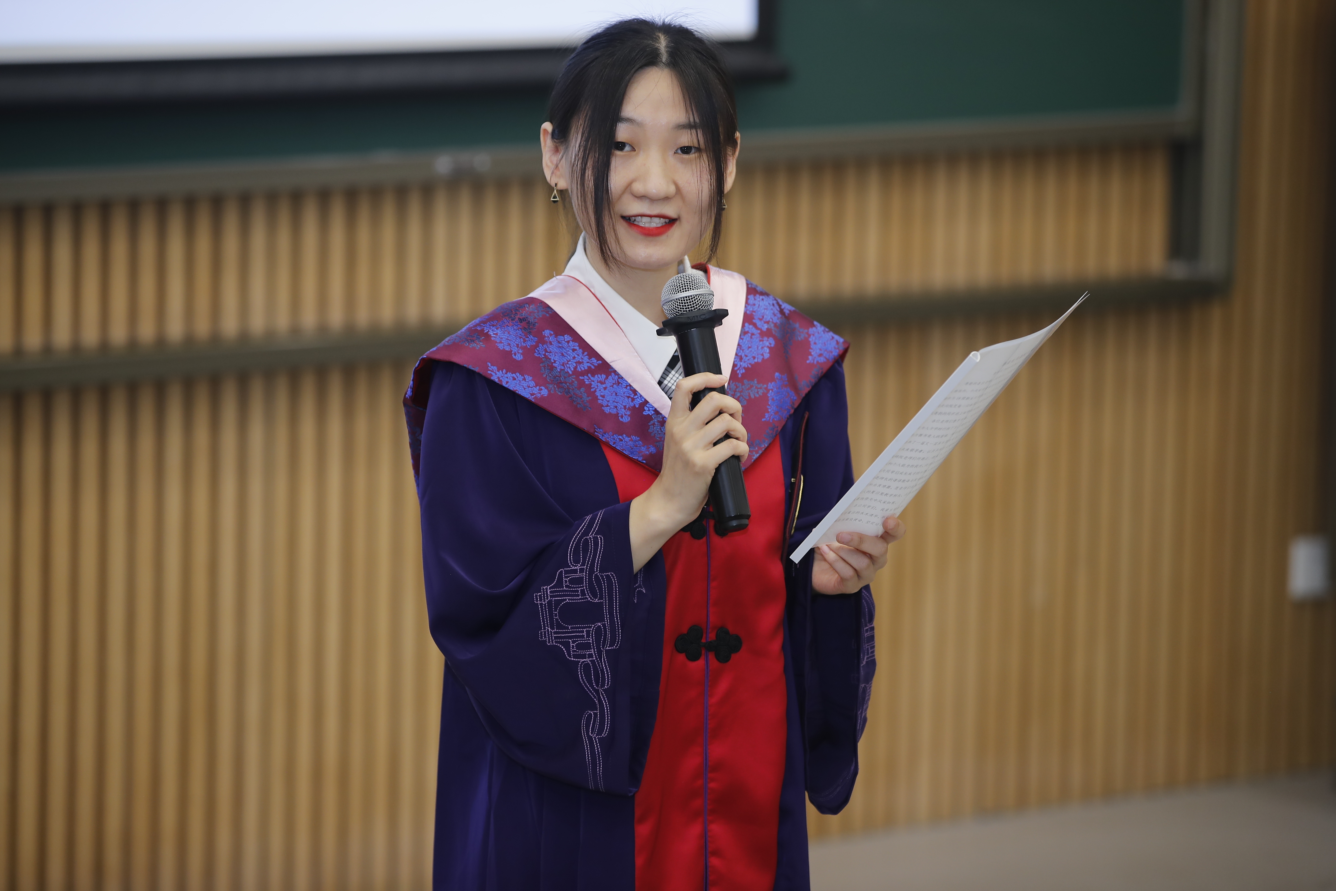 学术博士优秀毕业生代表杨佳乐在发言中表示,教研院老师们给予的不仅是前沿知识的输入和个人能力的提升,还有价值观念的重塑与精神风貌的再造,是同学们成长成才的引路人和同行者。面对即将开启的人生新征程,她倡议,以“天生我材必有用”的信心迎接人生的机遇与挑战,以“如切如磋,如琢如磨”的匠心对待选择的生活,愿大家以梦为马,仗剑天涯,岁月无虞,未来可期。
