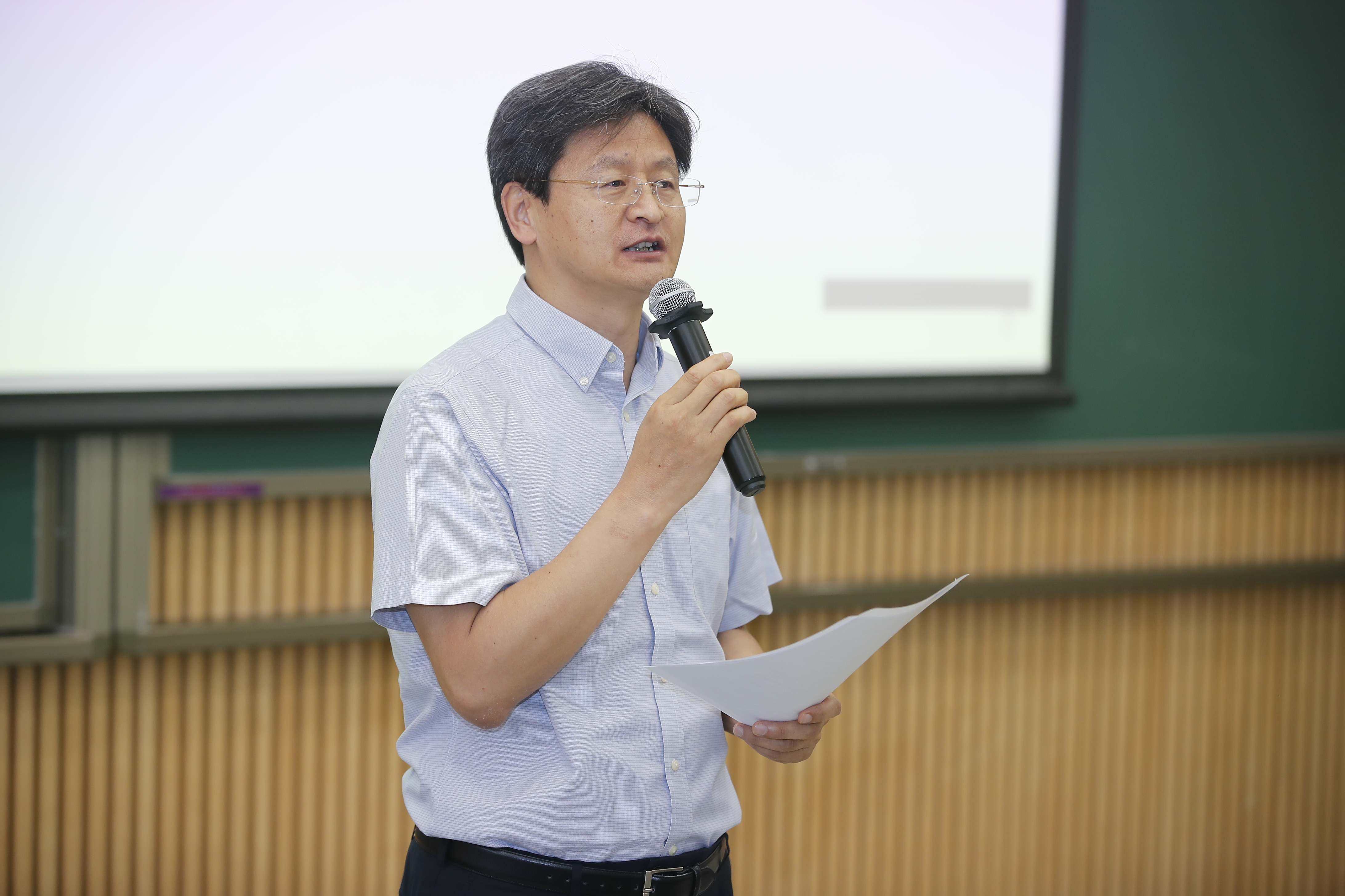 教师代表韩锡斌在发言中首先祝贺毕业生们克服了各种困难,顺利毕业,开启下一段人生旅途。他希望同学们在未来的人生道路上要秉持“事业心、责任心、平常心”,与国家发展同向同行,在中华民族伟大复兴的道路上书写自己的精彩人生。最后,他表示,教研院是永远的家,希望毕业生们继续关注母校,保持沟通交流,为公司人才培养、学术研究等贡献力量。