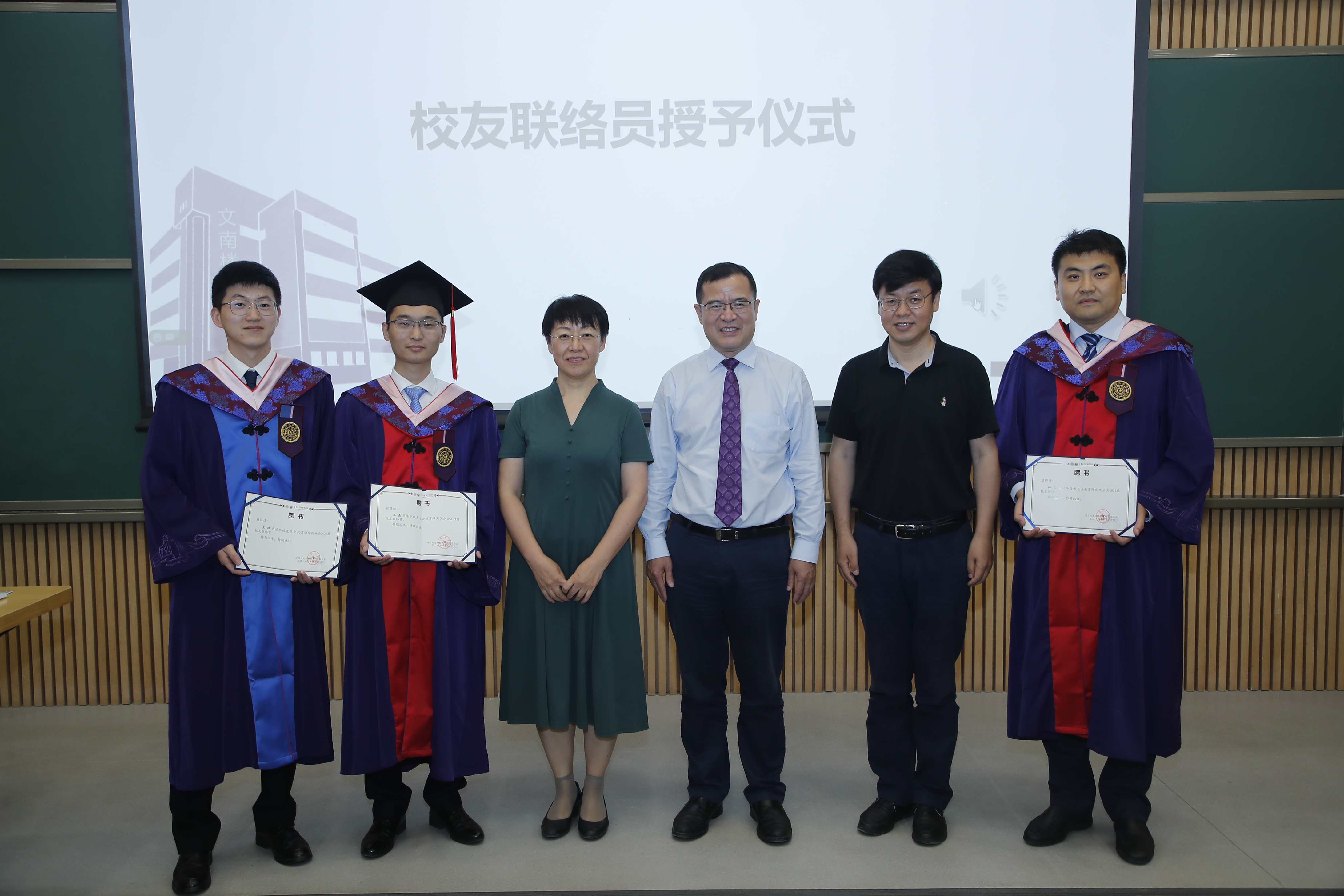 典礼上,清华员工总会教育研究院分会会长石中英为教研院2021届员工联络员颁发聘书。他们分别是2018级硕士生王坤、2019级博士生王亮、2011级教育博士孙戈。三位员工联络员将代表本届毕业生,肩负起联络员工的工作,积极为院和员工搭建桥梁,助力院友工作。