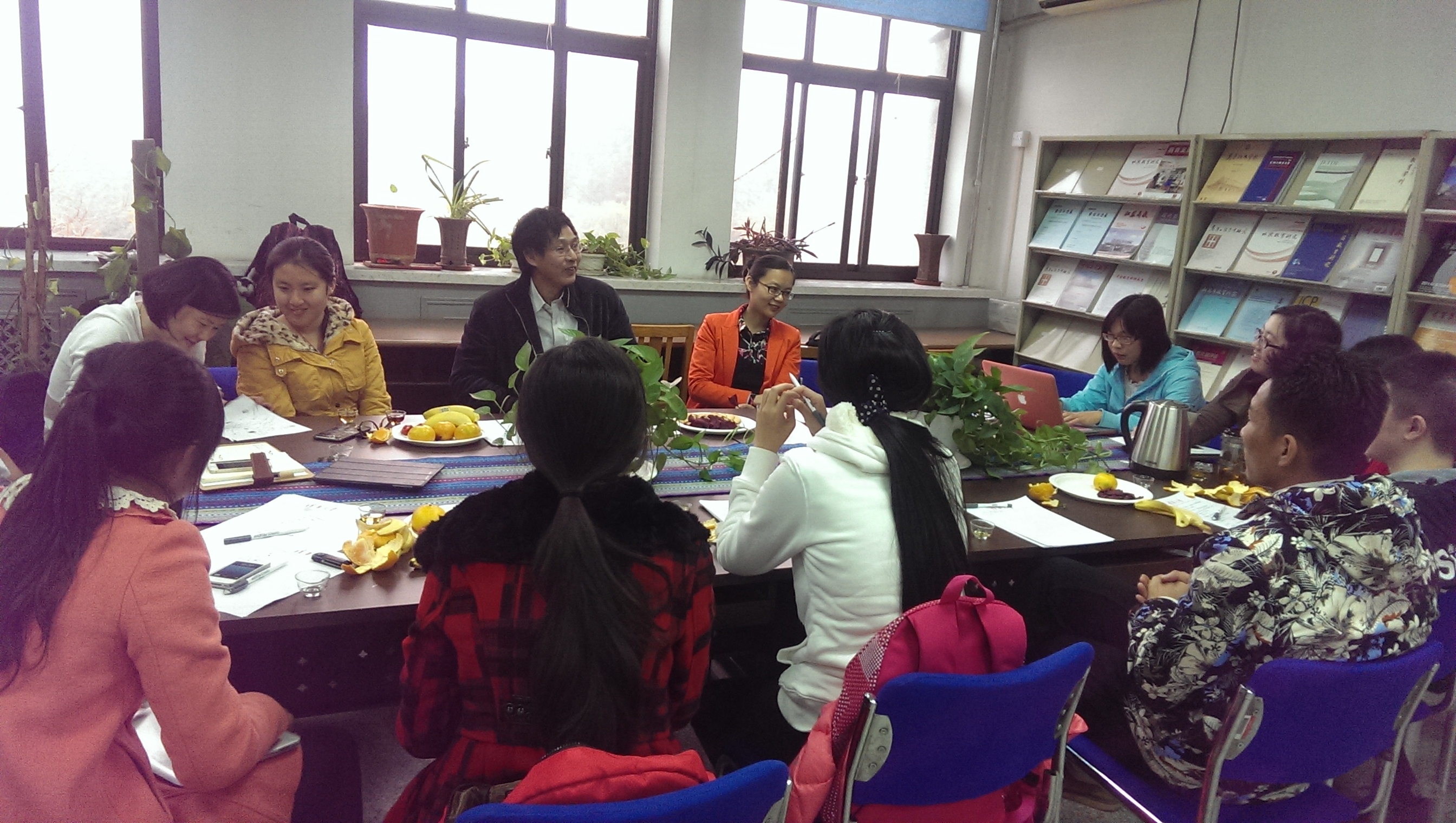 紧接着,老师与同学品尝着茶点,进入温馨、闲适的“家庭式”交流环节。带着问题而来的同学成为交流会的“主人”,积极地提出困惑自己已久的疑问,关于自身未来职业发展、关于院里宣传建设问题、关于学术与就业的去向等问题,表达了希望通过茶话会这个与老师直接交流沟通的平台获得解答和帮助的渴求。