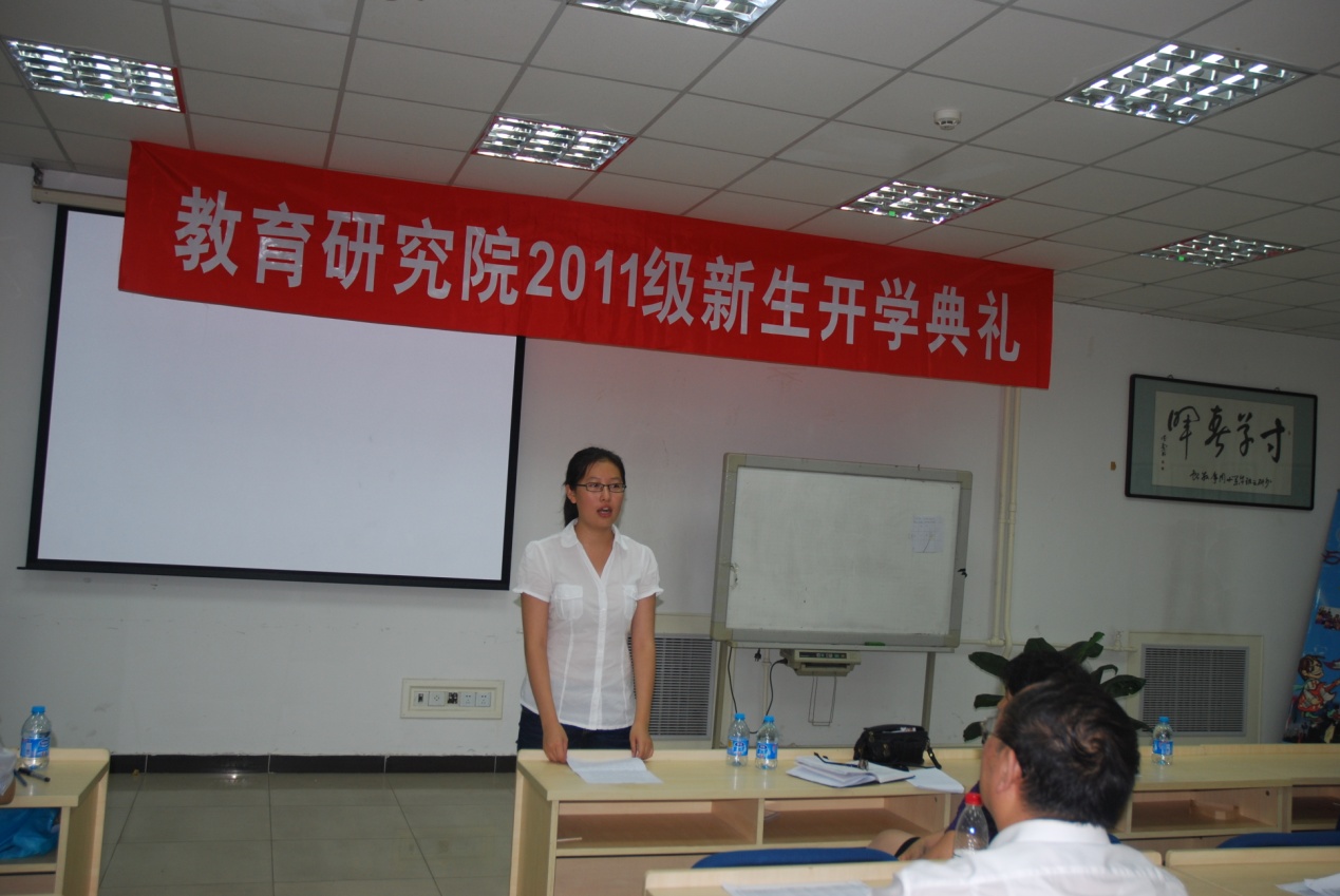 8月26日上午10点半,教育研究院2011级新生开学典礼在文南楼116会议室隆重举行。教研院所有教师、除Ed.D外的所有11级新生、以及老生代表出席了典礼。
