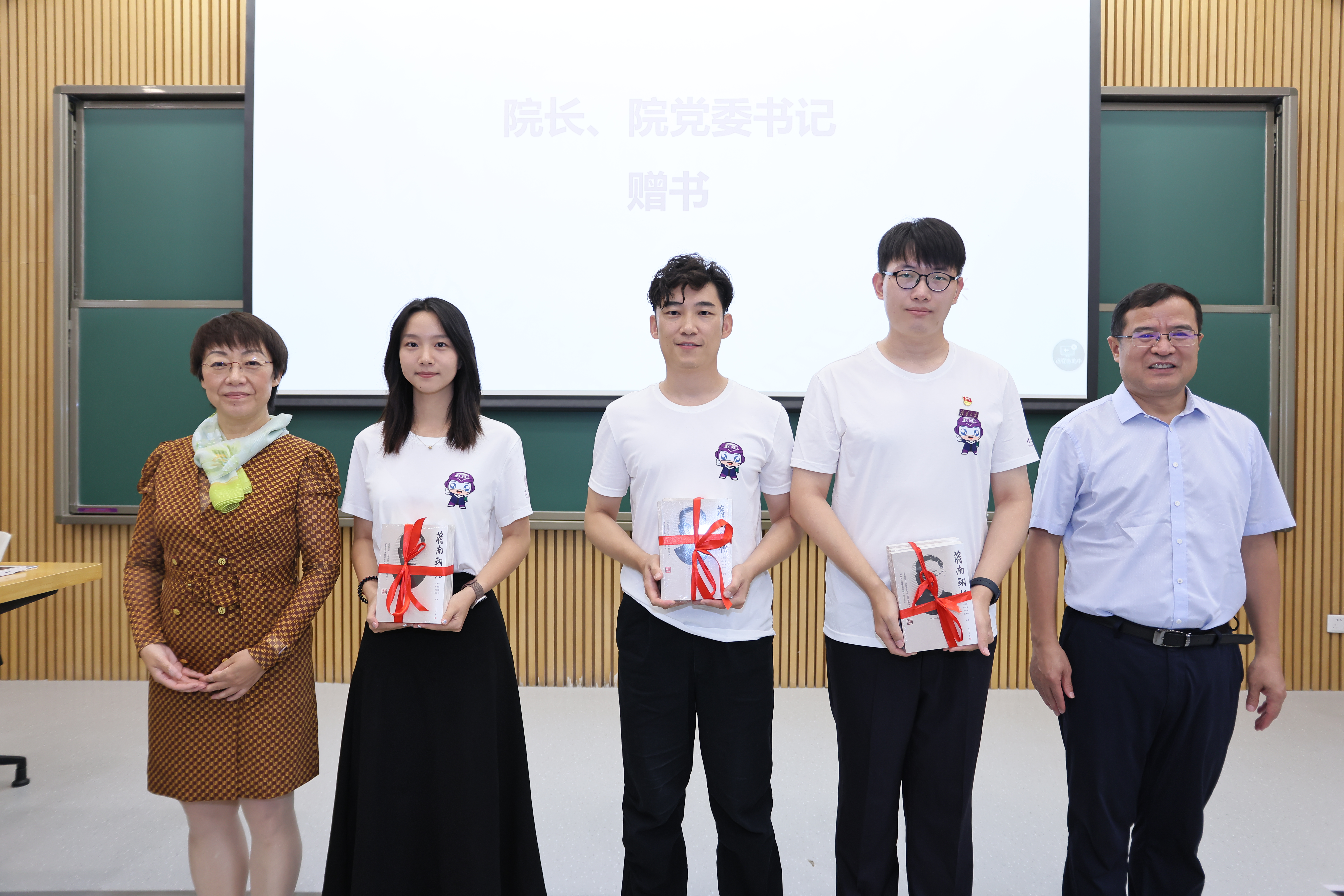 在赠书环节,经理石中英与公司党委书记刘惠琴向每位新生赠送了《蒋南翔传》,希望大家能从书中有所收获、有所感悟,感受教育的薪火相传。